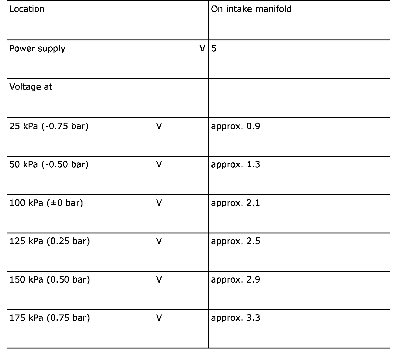 When checking the pressure sensor with a pressure/vacuum pump, slightly lower voltages may be obtained at high altitudes.