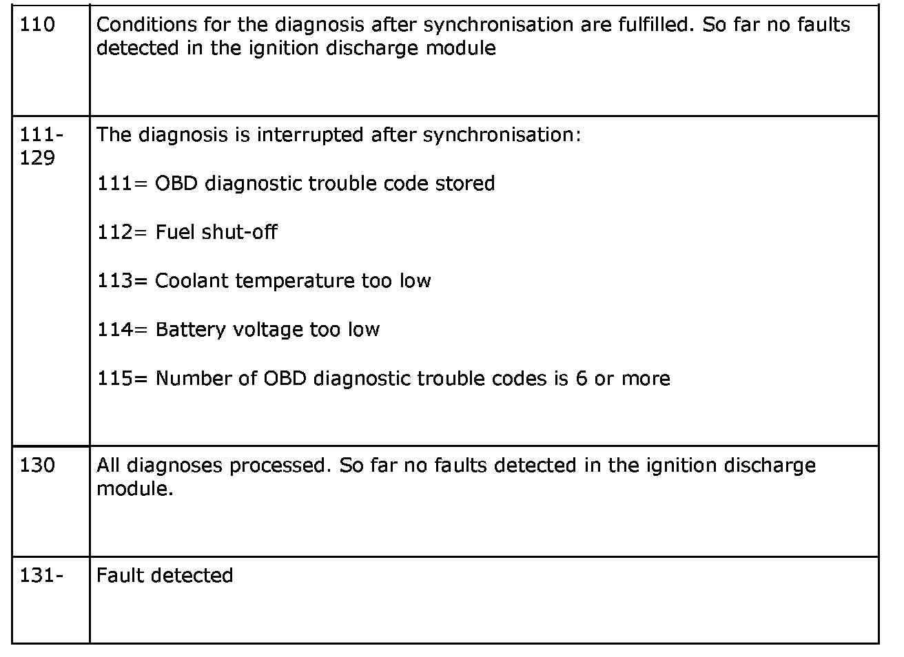 A number is displayed here which indicates which stage the diagnostic procedure is in. If the number is 130 or lower then no fault has yet been detected in the ignition discharge module.