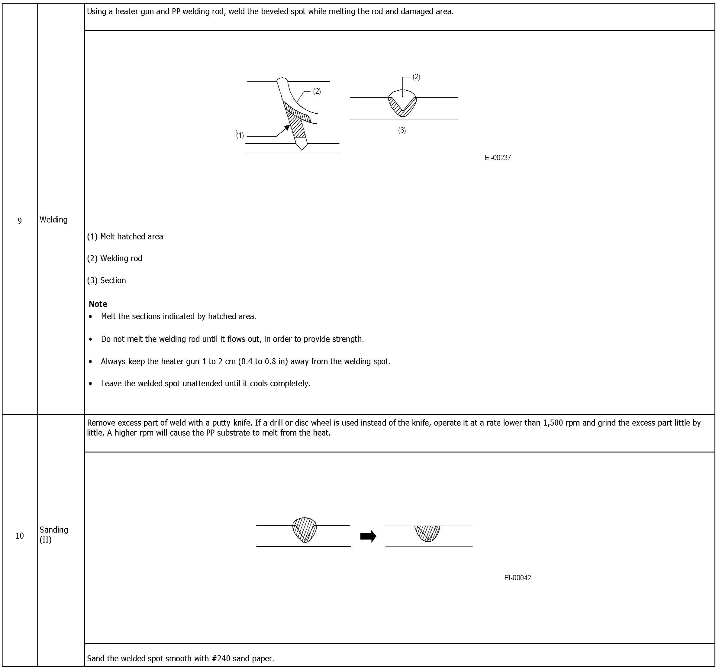 REPAIR INSTRUCTIONS FOR COLORED PP BUMPER