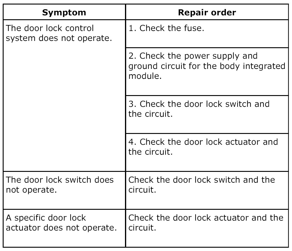 CHECK DOOR LOCK ACTUATOR AND CIRCUIT