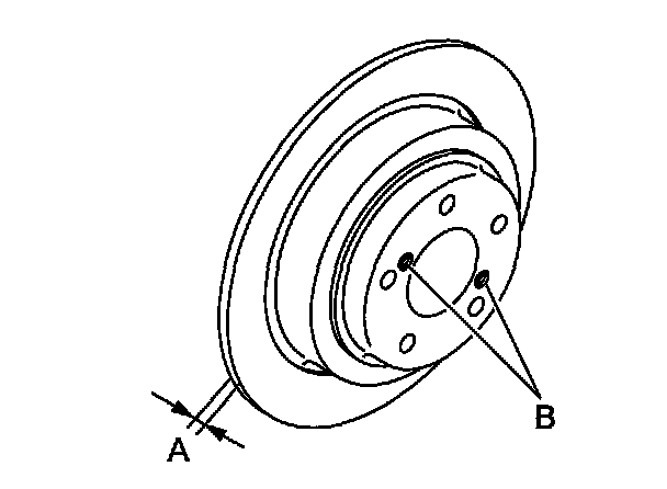 If the disc rotor seizes up within hub, drive the disc rotor out by installing an 8-mm bolt in holes B on rotor.