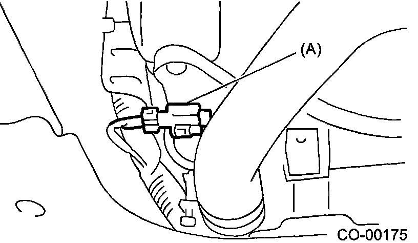 7. Disconnect the ATF cooler hose from ATF pipe. (AT model) Plug the openings in the hose and radiator with caps in order to prevent ATF from leaking.