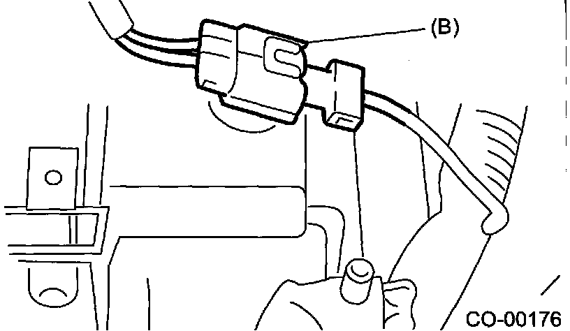 6. Disconnect the connectors of radiator main fan motor (A) and sub fan motor (B).