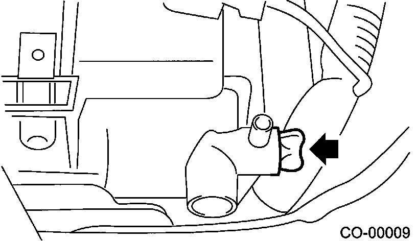 NOTE: Remove the coolant filler tank cap so that engine coolant will drain faster.