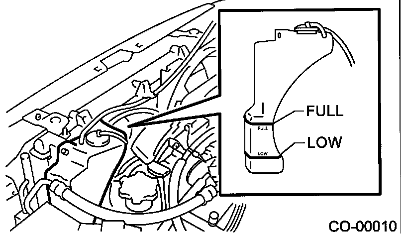If the engine coolant level drops from Full level of reservoir tank, add engine coolant to Full level.
