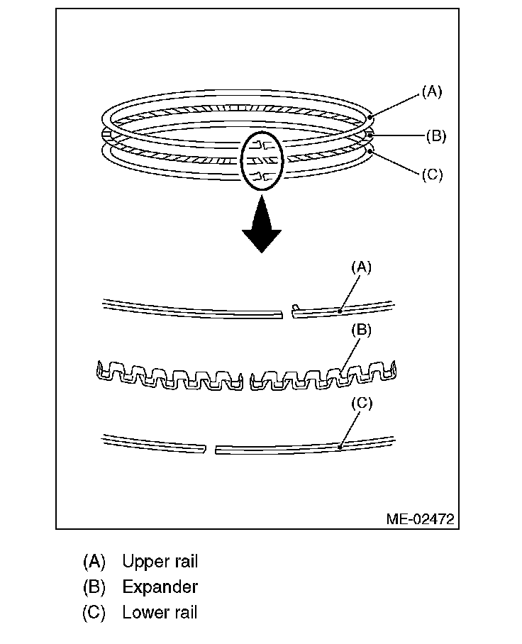 ^ Oil ring consists of upper rail, expander and lower rail. When installing on piston, be careful of each rail's direction.