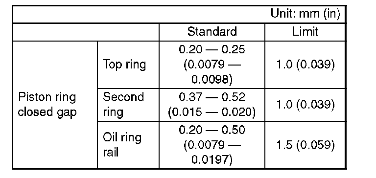 2. Squarely place the piston ring and oil ring in cylinder, and then measure the piston ring closed gap with a thickness gauge.