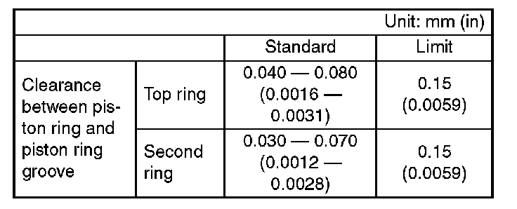 NOTE: Before measuring the clearance, clean the piston ring groove and piston ring.