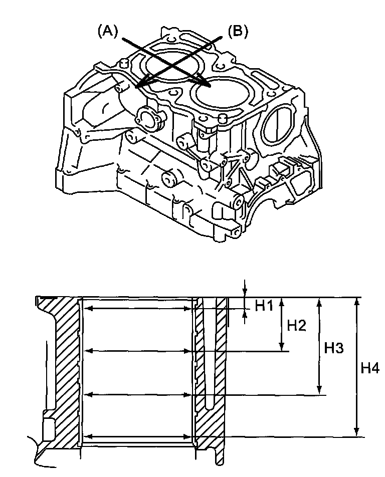 b. If the cylinder inner diameter exceeds limit after boring and honing, replace the cylinder block.