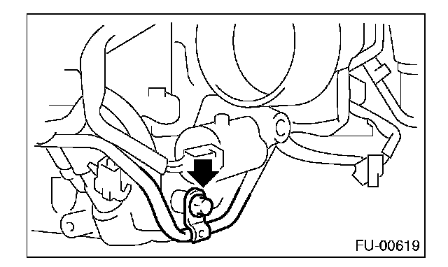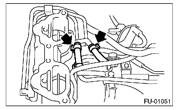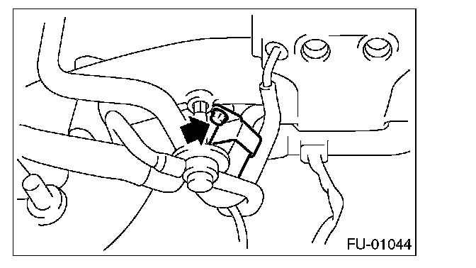 17. Loosen the clamp which holds the front left side fuel hose to fuel injector pipe and remove the pipe from clamp.