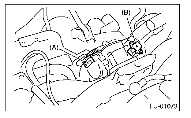 4. Disconnect the connector from the throttle position sensor (A) and manifold absolute pressure sensor (B).