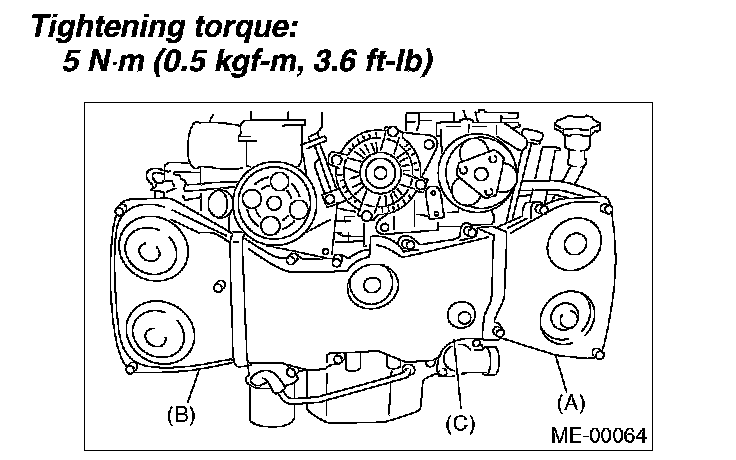 Tightening torque: 5 Nm (0.5 kgf-m, 3.6 ft. lbs.)