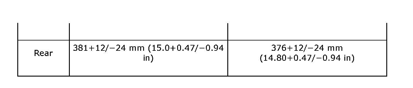 Toe-in: 0 ± 3 mm (0 ± 0.12 inch) (tolerance)