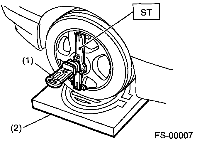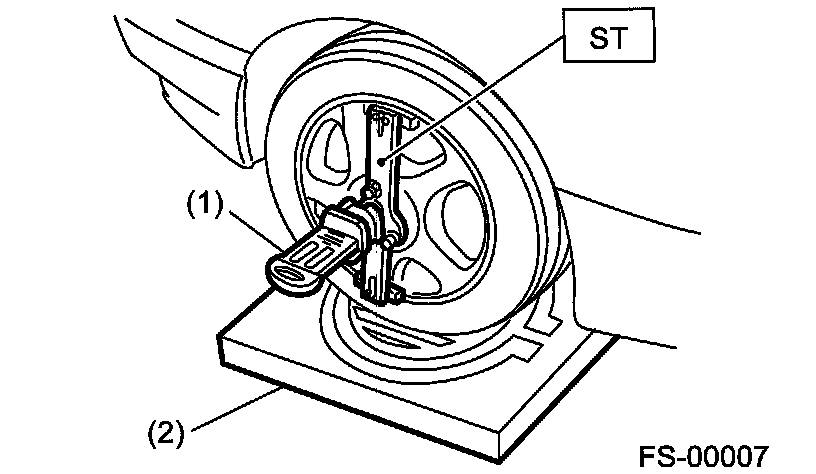 Set the ST into center of wheel, and then install the wheel alignment gauge.