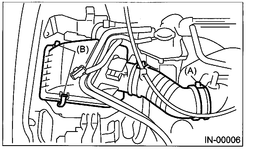 Loosen the clamp (A) which connects the air intake boot and intake duct.