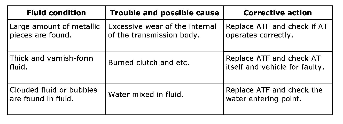 Note: When replacing ATF, check the inside condition of the transmission body by inspecting the drained ATF.
