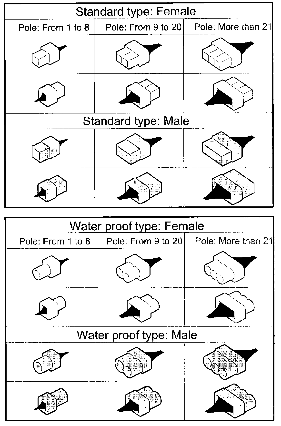 A number of connector symbols are used in each wiring diagram to easily identify the wiring harness connectors.