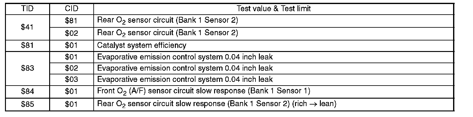 Refers to data denoting the operating condition when trouble is sensed by the on-board diagnosis system. A list of the support data and PID (Parameter Identification) codes are shown in the above table.