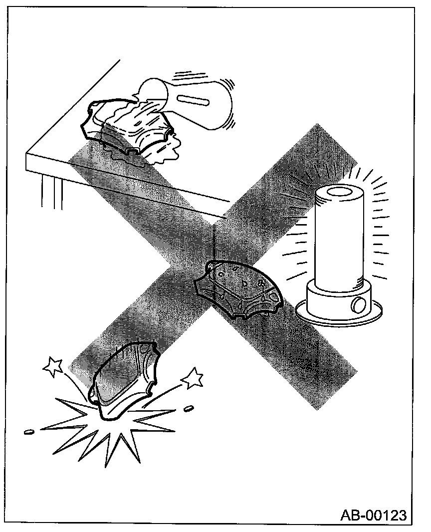 - When storing a removed airbag module, do not place any objects on it or pile airbag modules on top of each other. If the airbag inflates for some reason when it is placed with its pad side facing downward or under any object, a serious accident may result.
