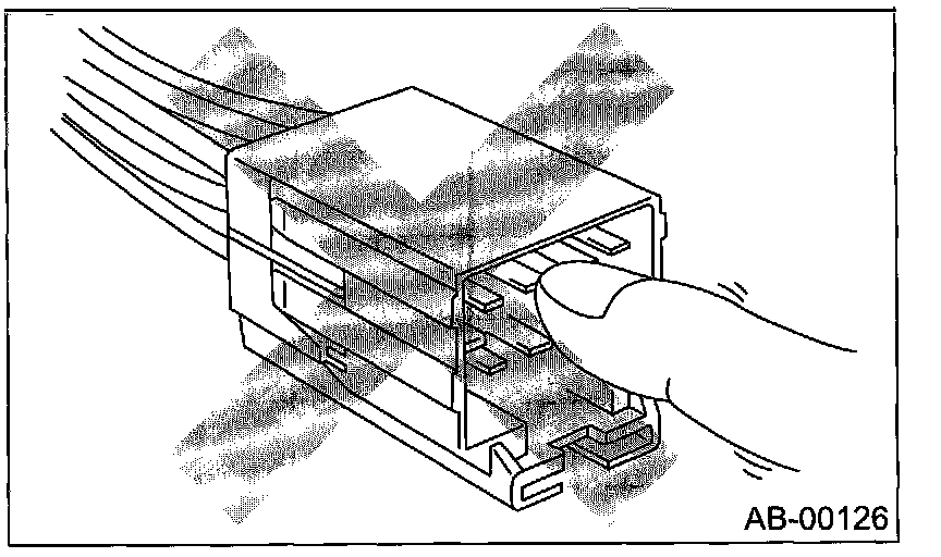 - When checking, use a test harness (1). Do not directly apply the tester probe to any connector terminal of the airbag. Damage to the connector terminal may cause the airbag to activate erroneously.
