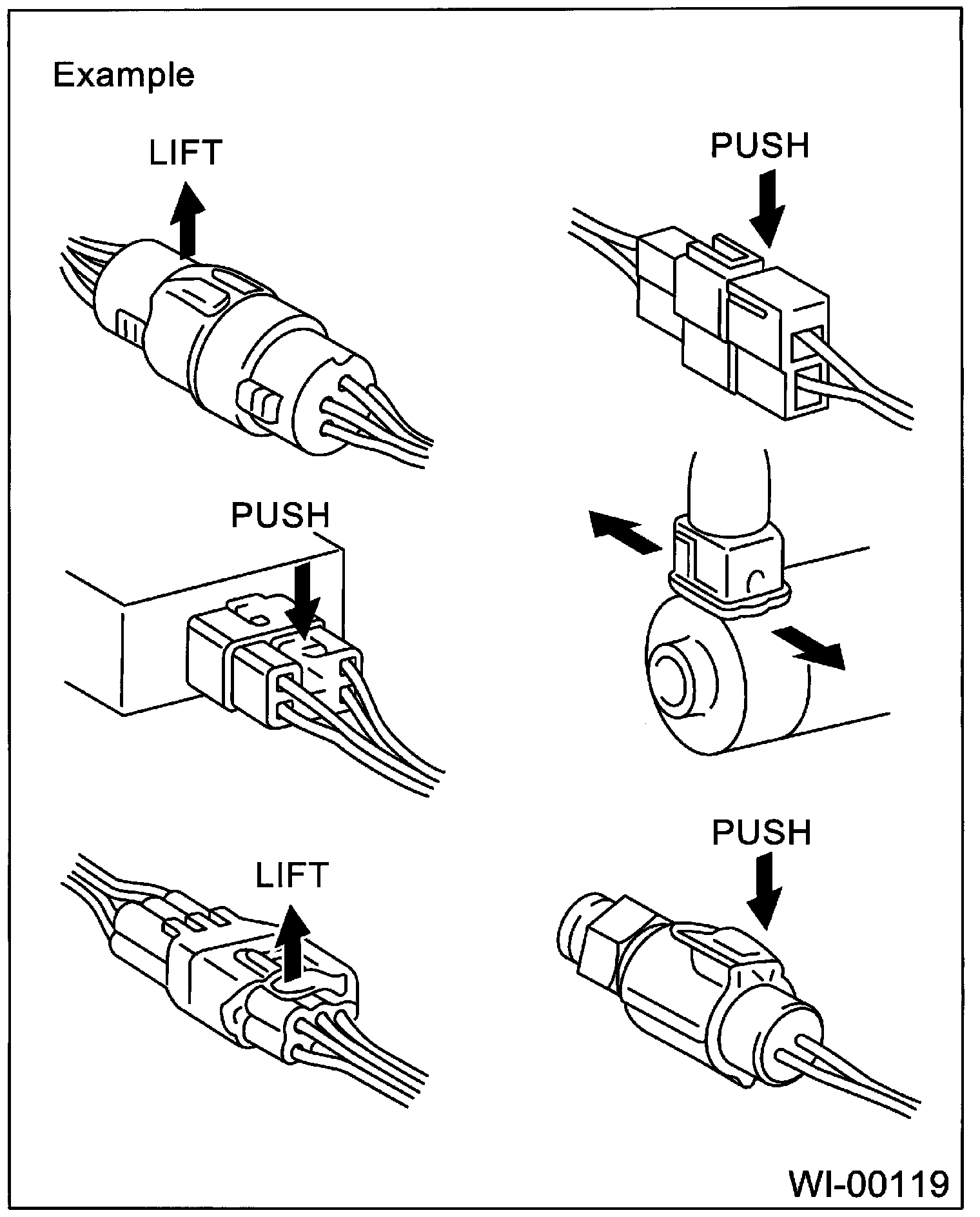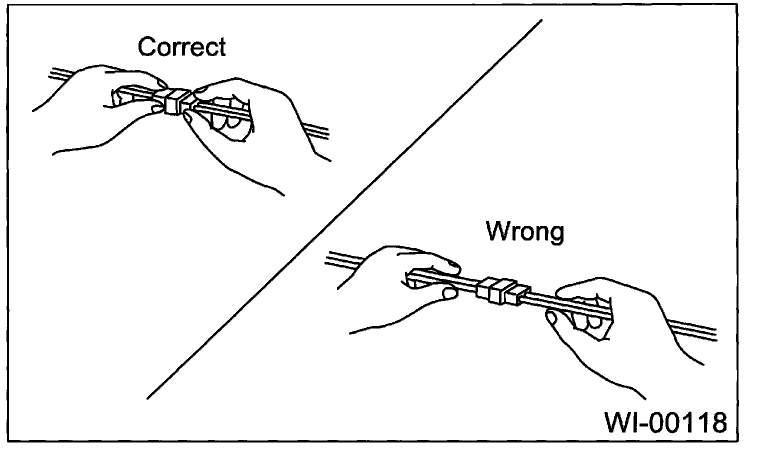 When disconnecting a connector, do not pull the wires, but pull while holding the connector body.