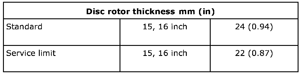Front Disc Specifications: