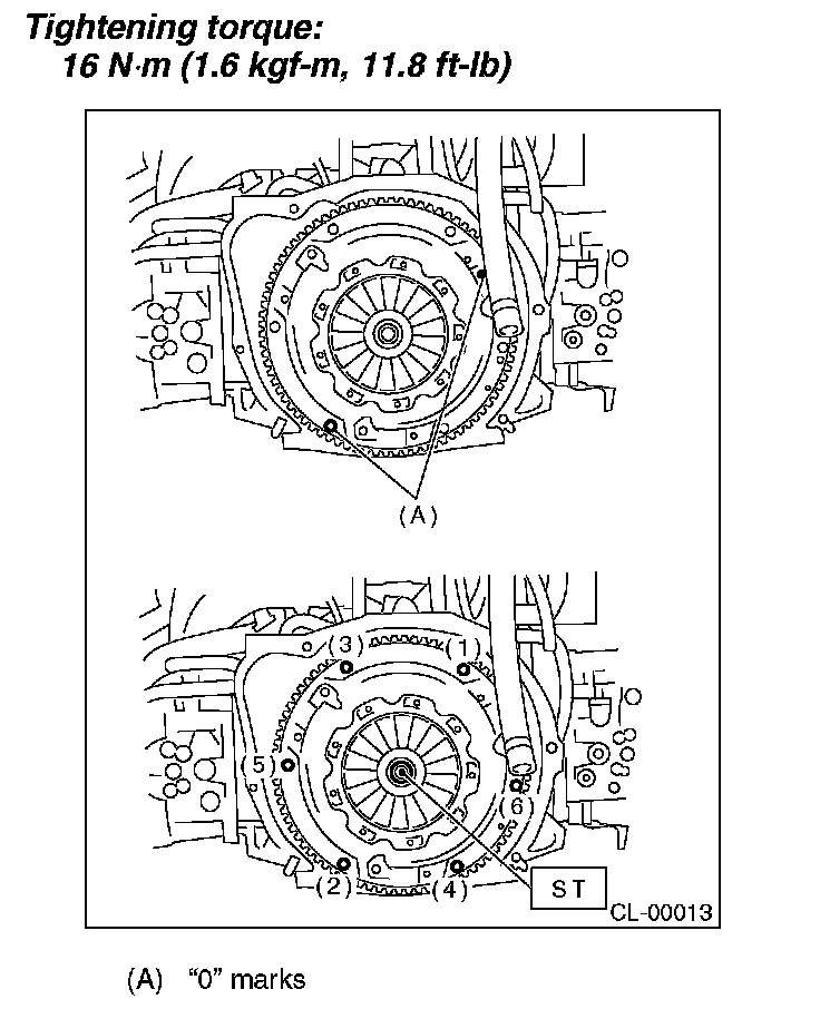 Tighten the clutch cover installing bolts gradually. Each bolt should be tightened to the specified torque in a crisscross order.