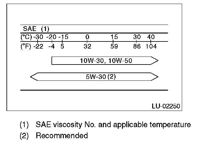 NOTE: If the vehicle is used in areas with very high temperatures or for other heavy duty applications, the following viscosity oils may be used: API standard: SM or SL