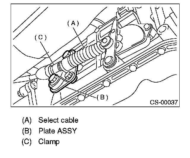 9. Disconnect the cable from select lever, and then remove the cable bracket.