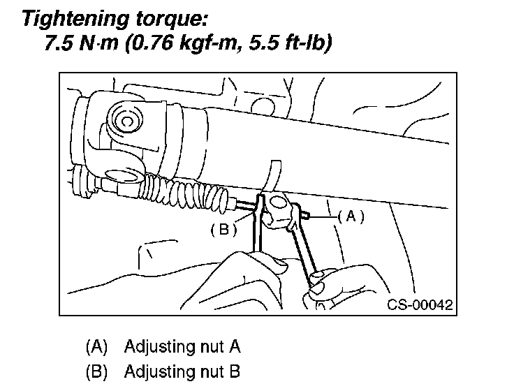 7. While preventing the adjusting nut B from moving with a wrench, tighten the adjusting nut A.
