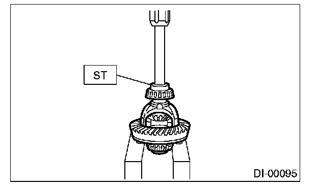 (3) Insert the ST1 into carrier with pinion height adjusting washer and rear bearing cone fitted onto it.
