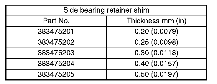 (3) Install the side bearing retainer shims to the right and left retainers from which they were removed.