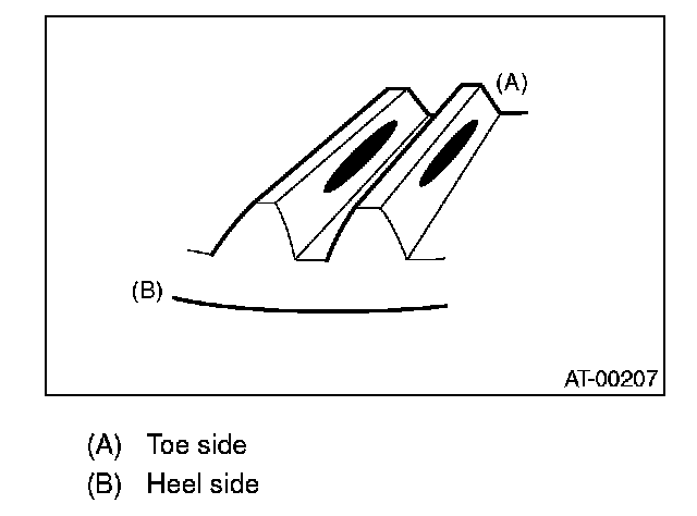 (2) When the contact pattern is incorrect, readjust according to the instructions given in "TOOTH CONTACT PATTERN".