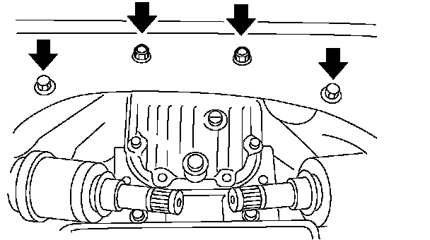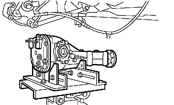 20. While slowly lowering the transmission jack, move the rear differential forward and remove differential front member and rear differential from vehicle.