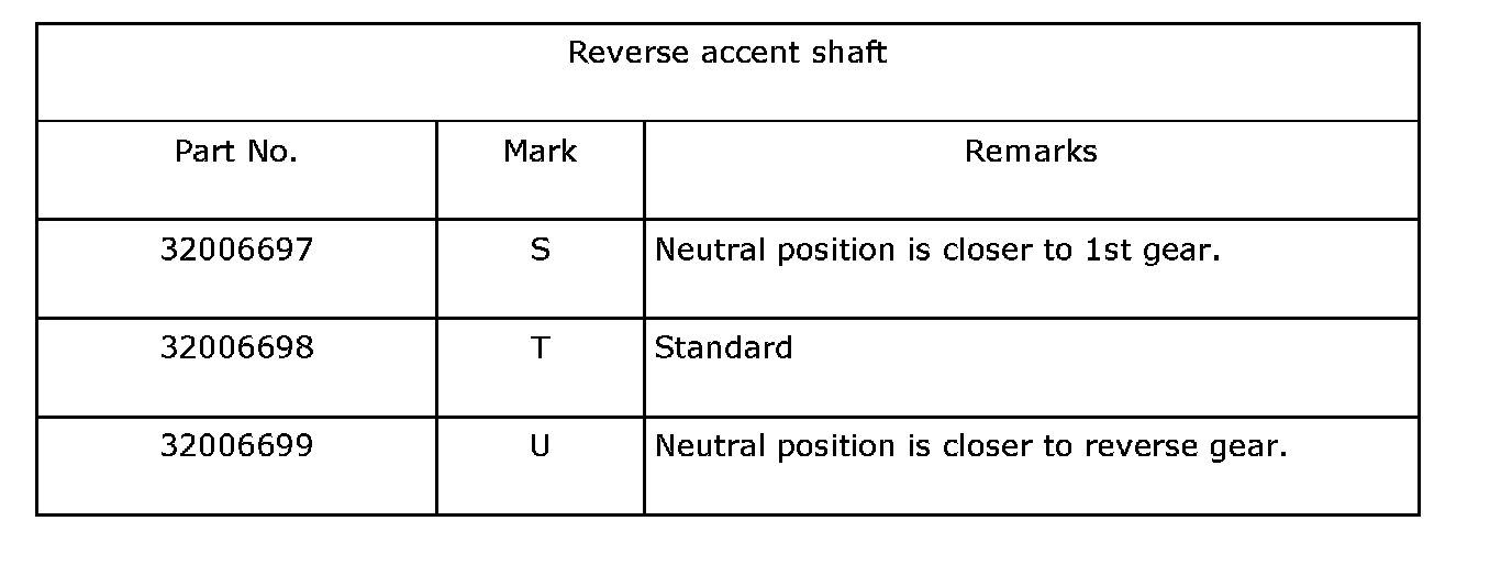 ^ If the shims alone cannot adjust clearance, replace the reverse accent shaft and re-adjust.