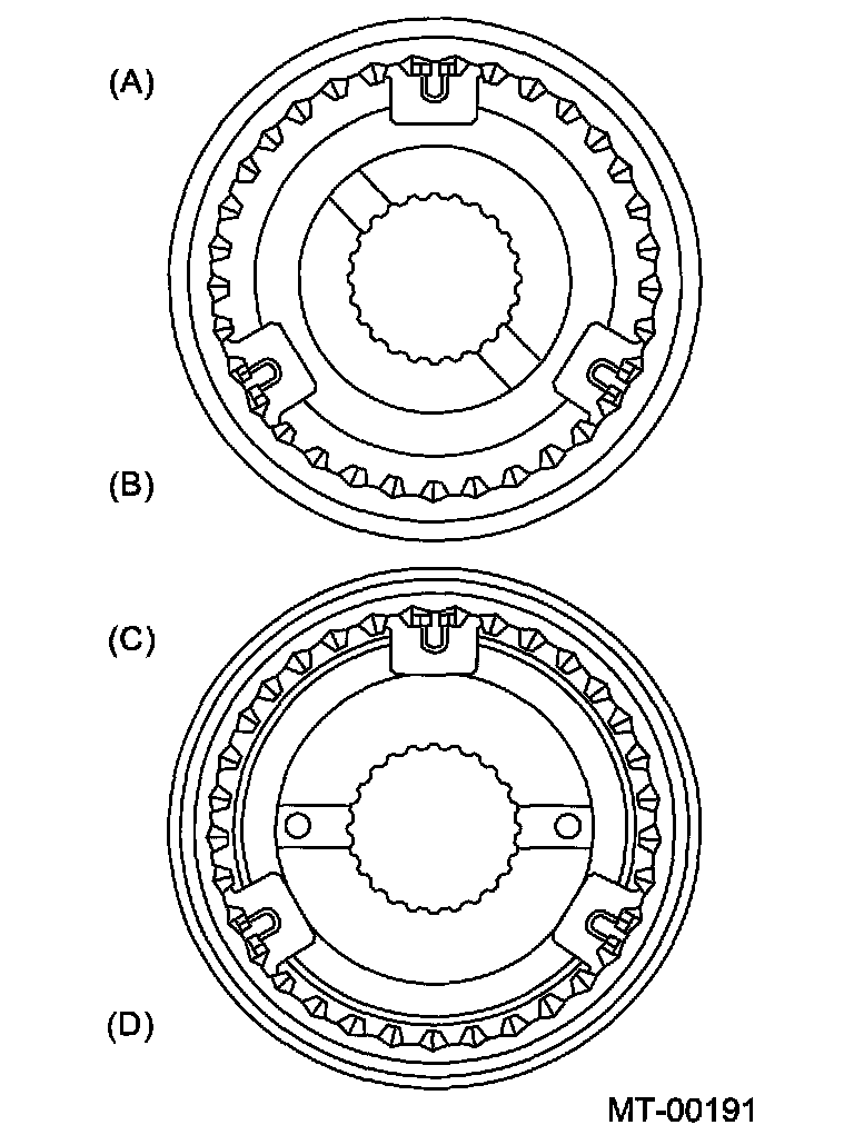 ^ When the contact surface of the synchronizer ring insert is scored or abnormally worn down.
