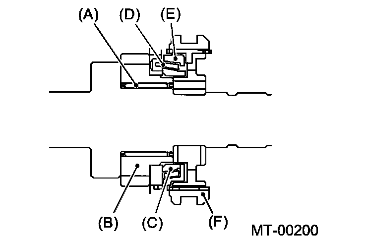 Note: Before measuring, tap the end of main shaft with a plastic hammer lightly in order to make the clearance zero between the main case surface and the moving flange of bearing.