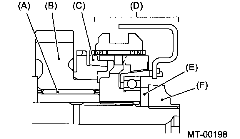 Note: Align the end face of seal with surface (A) when installing oil seal.