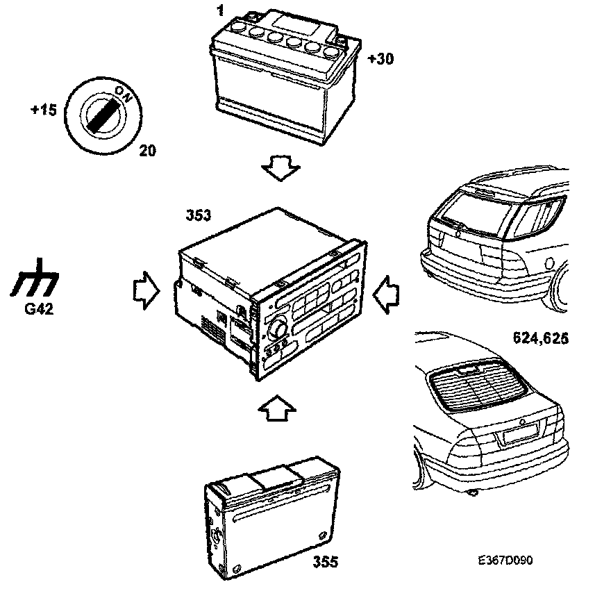 CD changer,line input right-hand channel (+/-) (355)