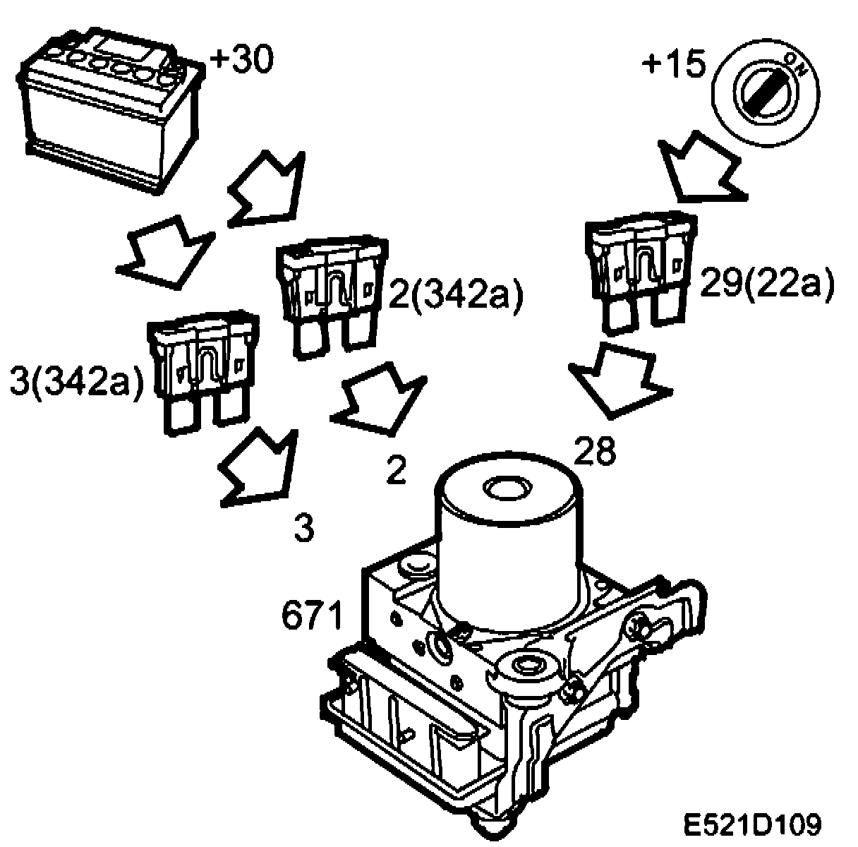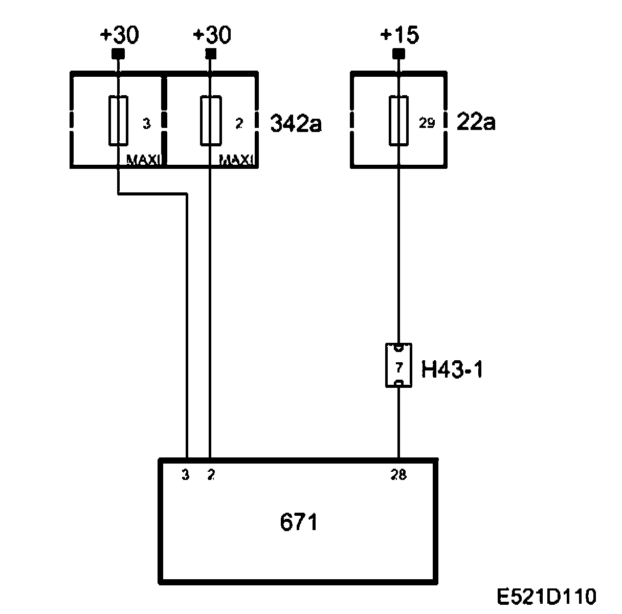 Power Supply Battery voltage (+30 circuit) +30 voltage is supplied via Maxi fuses 2 and 3 (342a) to pins 2 and 3 respectively on the control module.