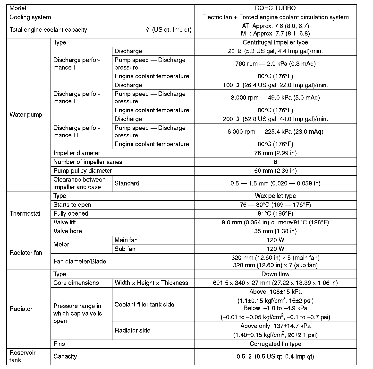 Cooling System: Specifications