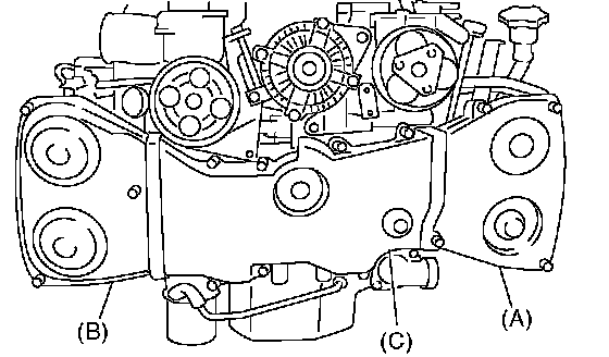 5. Remove the front timing belt cover (C).