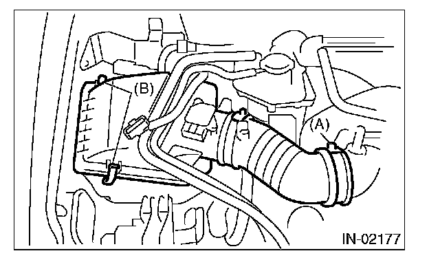 4. Remove the clip (B) from air cleaner upper cover.