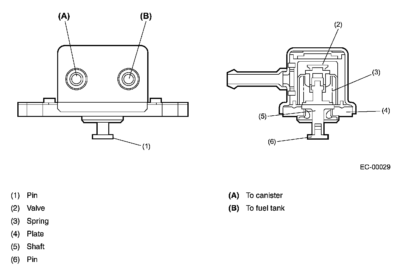 The shut-off valve is located at the top of the fuel filler pipe. When a filler gun is inserted into the filler pipe, the shut-off valve closes the evaporation line.
