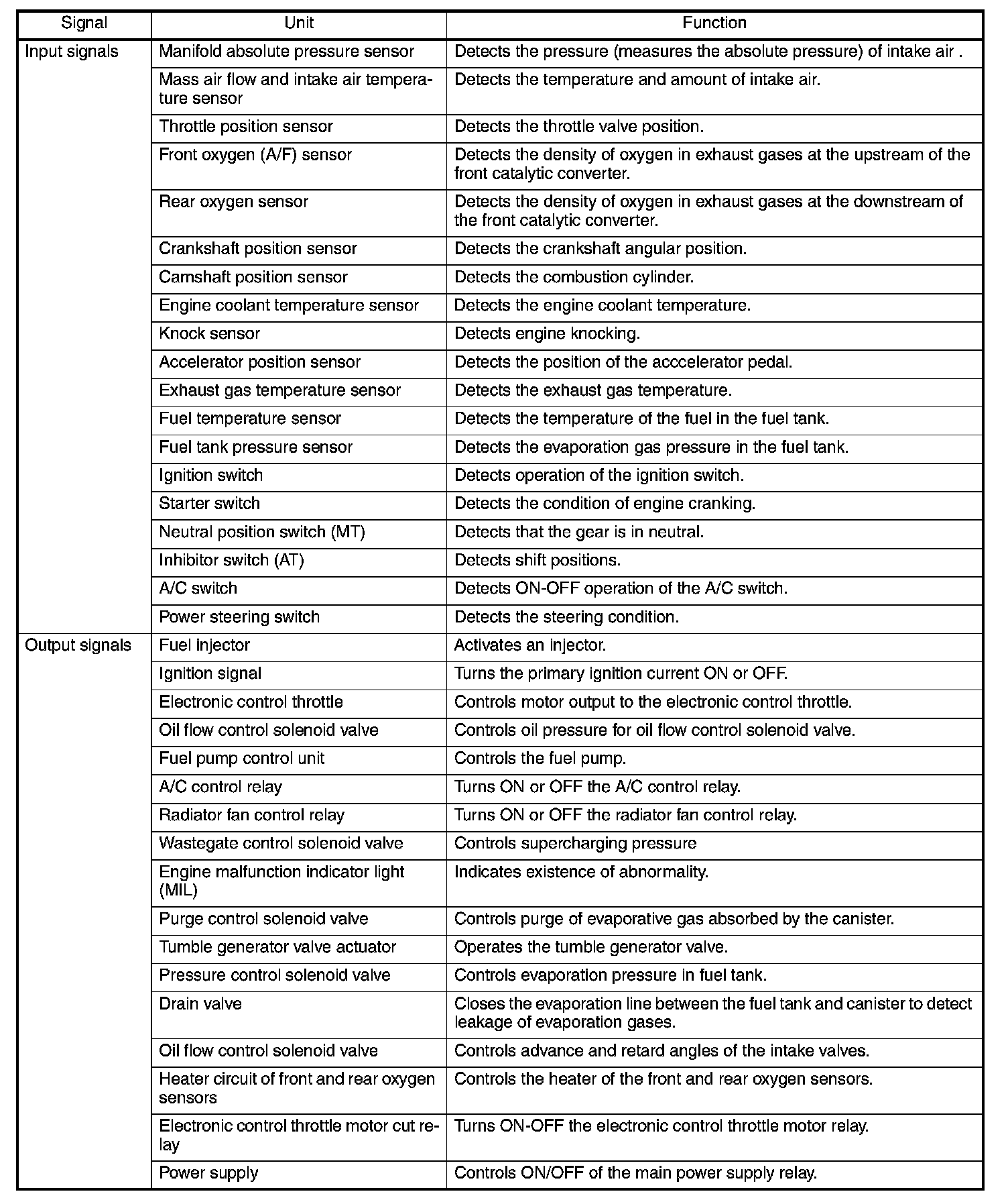 Input and Output Signals