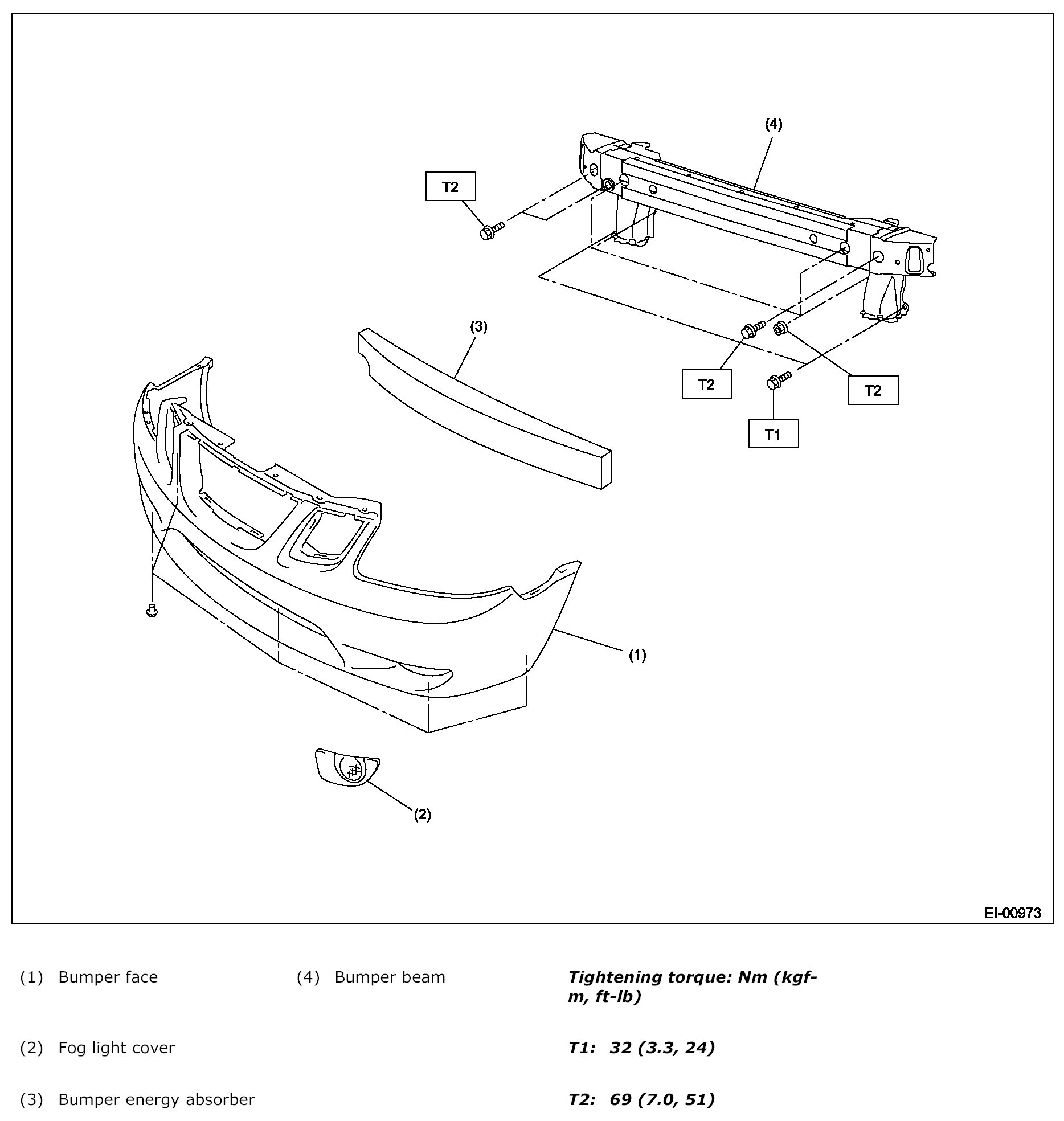 Loosen the bolt and nut, and then remove the bumper beam from body.