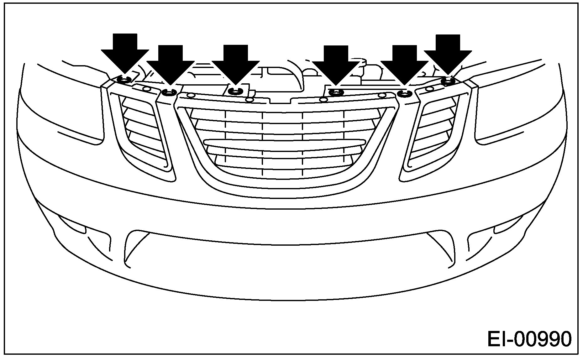 Remove the six clips on the upper part of bumper.