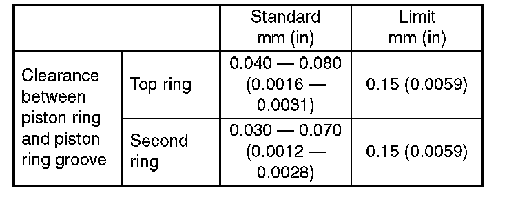 4. Measure the clearance between piston ring and piston ring groove with a thickness gauge.