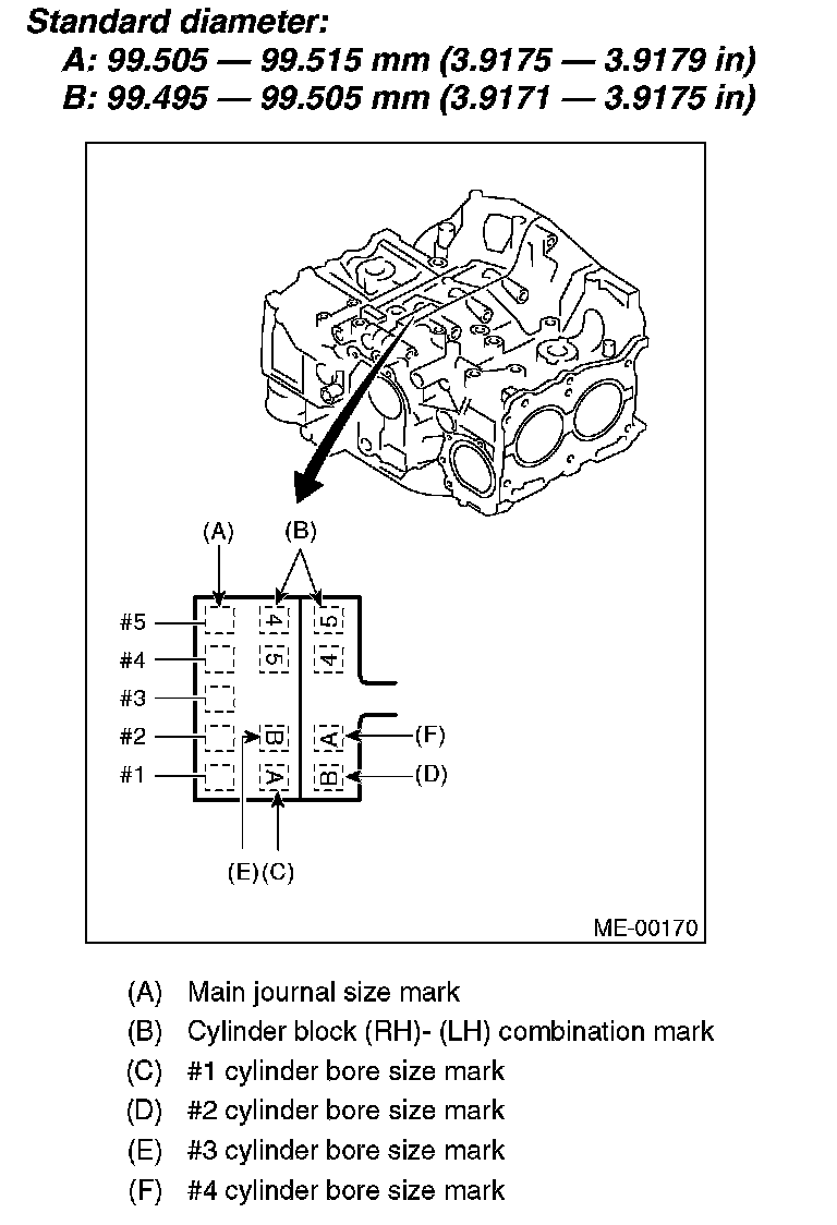1. The cylinder bore size is stamped on the cylinder block's front upper surface.