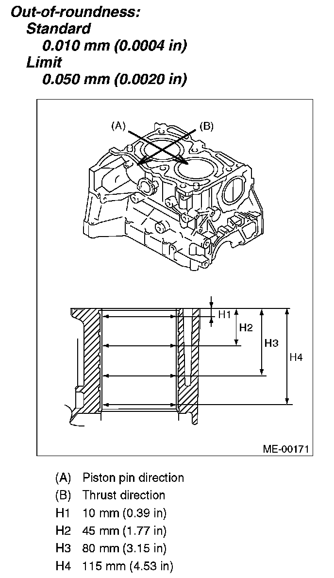 b. If the cylinder inner diameter exceeds limit after boring and honing, replace the cylinder block.